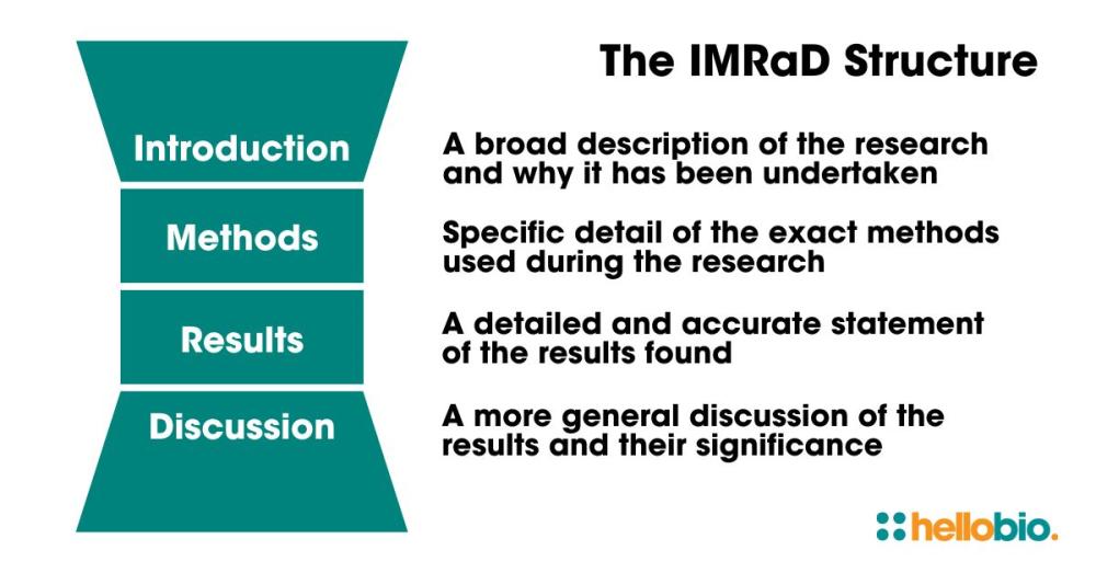 TOP TIP: A popular and useful format to use is the IMRaD structure which sees a paper arranged into four main sections: Introduction, Methods, Results, and Discussion. This structure allows for both broader discussions of the research question and findings, as well as more specific and focused detail with regard to the methods and results.