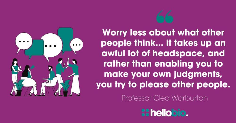 Clea: “You can spend a lot of time worrying about what people think, and that takes up an awful lot of headspace, and rather than enabling you to make your own judgments, you try to please other people.