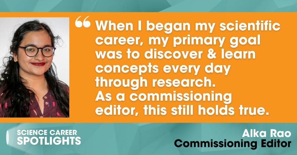 Alka: When I started my scientific career, my primary goal was to discover and learn concepts every day through research. As a commissioning editor, this still holds true.