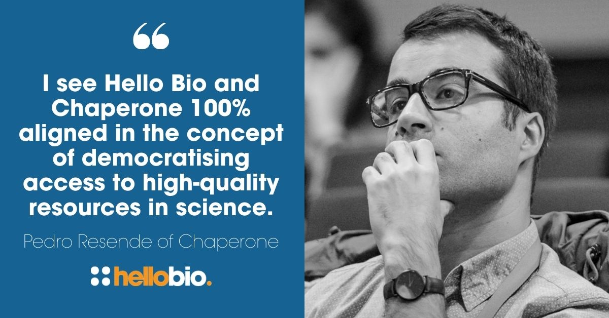 “I see Hello Bio and Chaperone 100% aligned in the concept of democratising access to high-quality resources in science. In the case of Hello Bio, a diversity of affordable reagents that allow scientists to carry out their experiments. At Chaperone, a diversity of specialised career consultants that allow scientists to access career development support. Our paths crossed naturally, and so our partnership emerged. The fact that Hello Bio has a very clear social mission was critical. I personally feel very happy for this partnership, and can only hope that many scientists take advantage of it!” - Pedro Resende