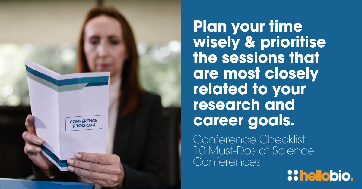 So you’ve registered for your chosen conference and made your travel arrangements - now it’s time to check out the event schedule and make a plan! Most conferences will publish their schedules online well in advance of the event, so you’ll have time to really go through the available activities, register for specific workshops, and find out more about the key speakers. There will probably be lots you’ll want to see and it might not be possible to do it all, but with some careful preparation you will maximise your chances of taking in the most relevant content. Plan your time wisely and prioritise the sessions that are most closely related to your research and career goals. Make a personal timetable to ensure you don’t miss someone or something that could be crucial to your professional development as a scientist.