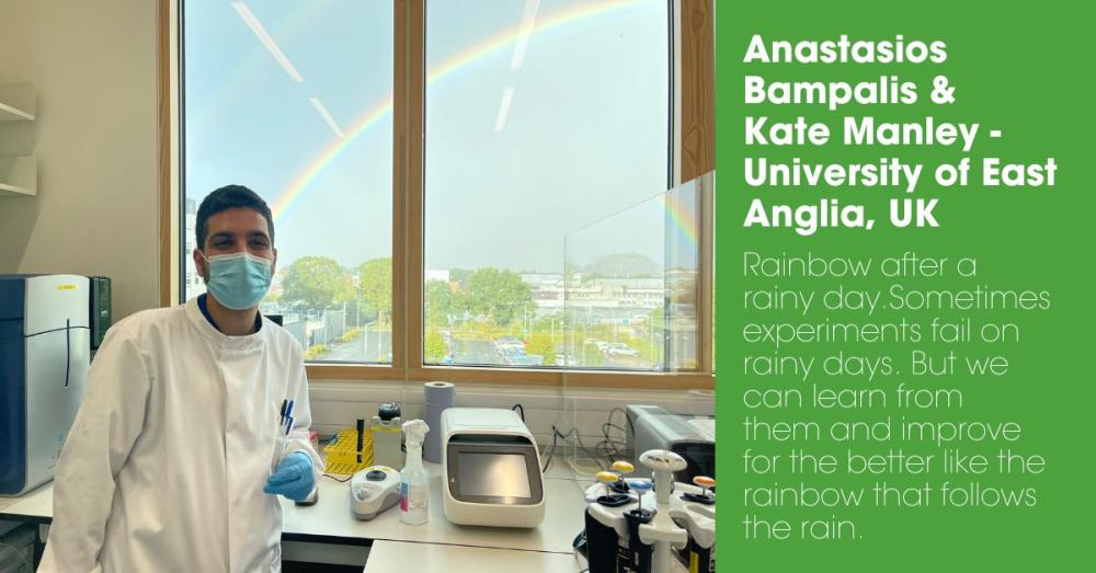 - Rainbow after a rainy day. Sometimes experiments fail on rainy days. But we can learn from them and improve for the better like the rainbow that follows the rain. Submitted by Anastasios Bampalis & Kate Manley of the University of East Anglia, UK.