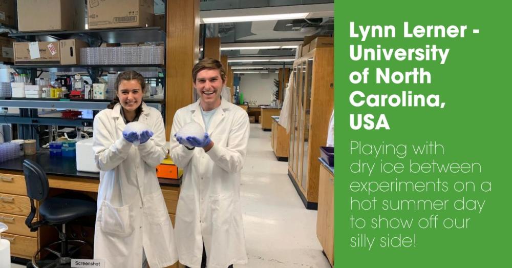 - Playing with dry ice between experiments on a hot summer day to show off our silly side! Submitted by Lynn Lerner of the University of North Carolina, USA.