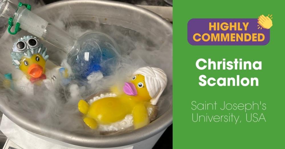 Amongst the seriously stunning science snaps were a few more light-hearted pics that made us chuckle, and none more so than this great shot by Christina Scanlon of Saint Joseph’s University, USA! She submitted this fun photo of their lab rubber ducks, Earl(enmeyer) and (SDS)Page relaxing in the rotavap after a long day of research!