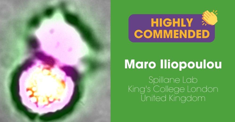 Another unexpected face spotted under the microscope, and this one’s feline! Captured by Maro Iliopoulou of the Spillane Lab at King’s College London, UK, this great image was taken during B cell antigen recognition to study calcium signaling dynamics, and we couldn’t help but say ‘Hello Kitty’ when we saw it!