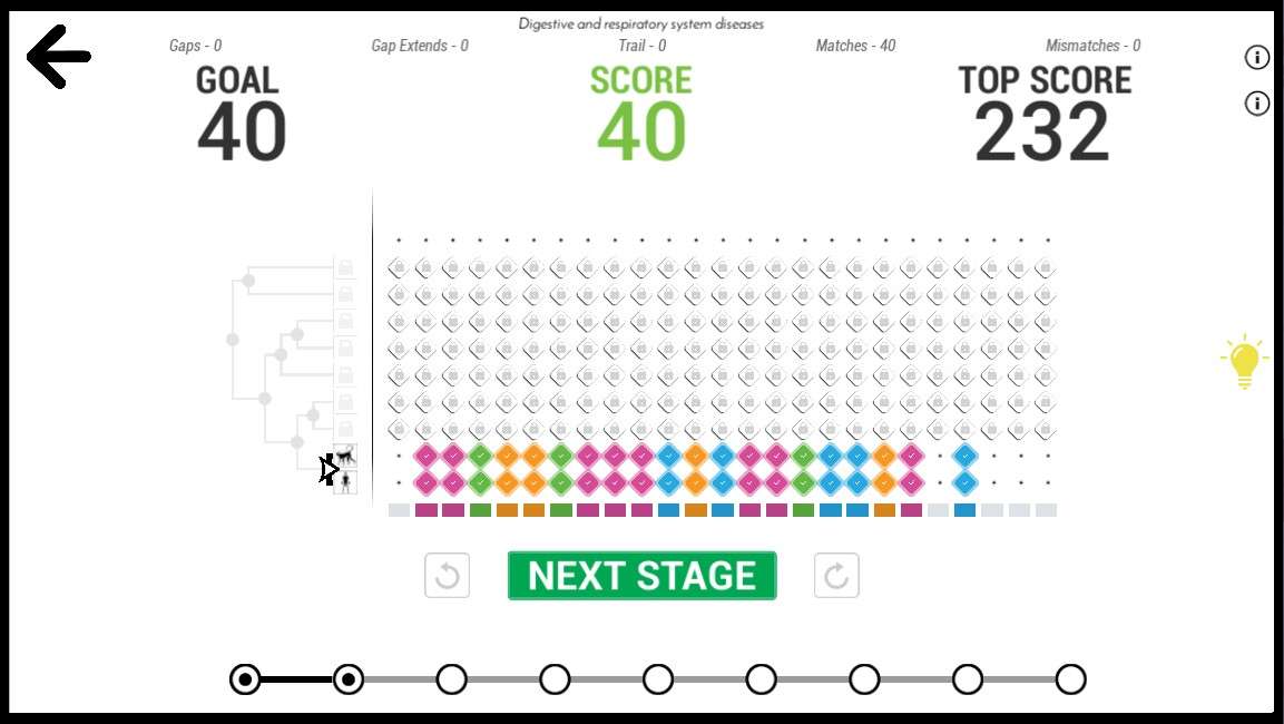 By beating the par score generated by the computer, you can then submit your sequence alignment to the database – helping research into identifying disease-associated or mutated genes.