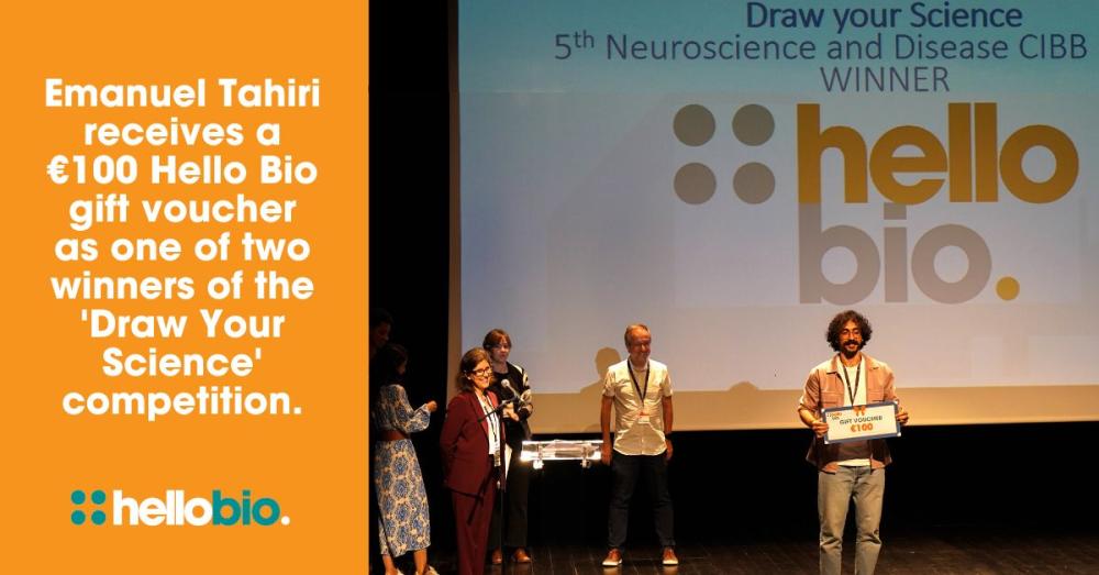 The winner of Hello Bio’s special prize was Emanuel Tahiri, a PhD candidate who is studying Autophagy dysfunction in axons and its contribution to Alzheimer’s disease pathogenesis at the Axonal biology in neurodevelopment and neurodegeneration group at CNC-UC.