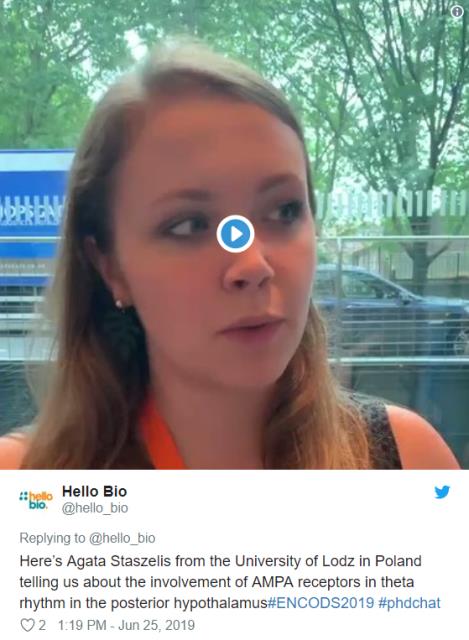 Agata Staszelis from the University of Lodz in Poland spoke to us about her research into the involvement of AMPA receptors in theta rhythm in the posterior hypothalamus: