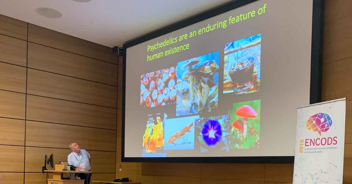 He spoke about the history of psychedelic use – including how it was used by Nobel Prize winners Francis Crick and Kary Mullis – and shared results of studies which show instead of ‘firing up’ areas of the brain, psychedelics like psilocybin in fact ‘switch off’ certain control centres and take us back to a more primitive way of thinking. This then creates an opportunity to form new pathways, which could potentially help break negative thought patterns associated with depression.