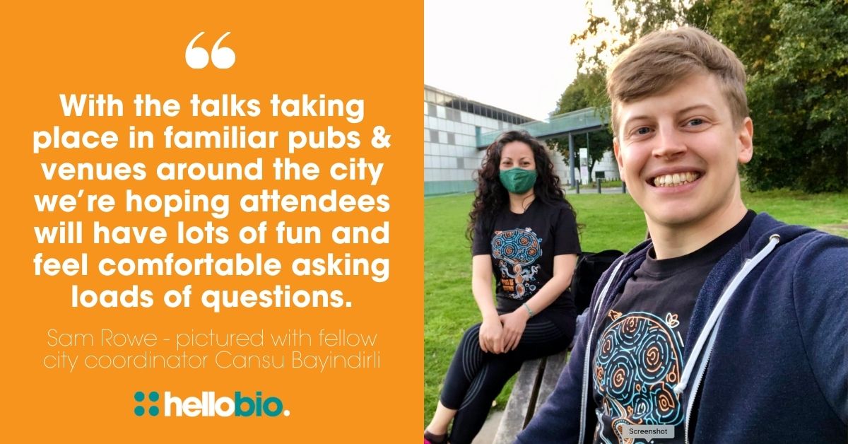 Sam Rowe is a scientist and science communicator working on the Darwin Tree of Life Project at the Earlham Institute in Norwich, UK. He became a City Coordinator for Pint of Science in 2019 and is now involved in organising and promoting the various events taking place around Norwich alongside fellow coordinator Cansu Bayindirli.