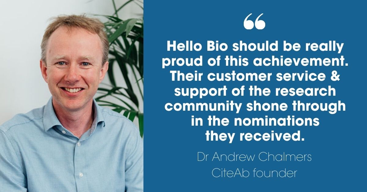 CiteAb founder, Andrew Chalmers, praised Hello Bio for their commendation. He said: