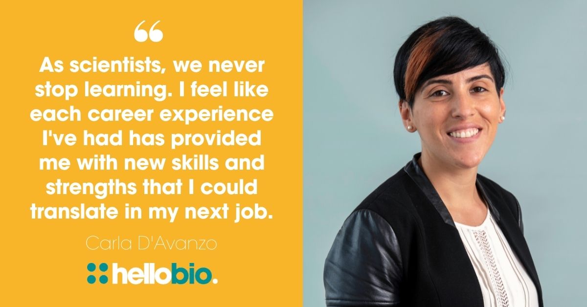 As scientists, we never stop learning. I feel like each career experience I have had has provided me with new skills and strengths that I could translate in my next job. I found it very valuable to talk to people with different expertise and backgrounds and to be open-minded in getting exposed to as many opportunities as possible.