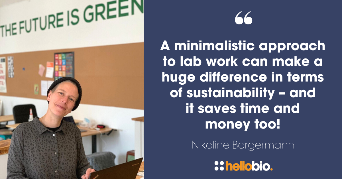 Nikoline: Minimalism! Use as little reagent as possible, use the smallest possible item (for example cell dishes and sample tubes), don’t store samples or data that you won’t need again, don’t keep equipment on when it isn’t needed. A minimalistic approach to lab work can make a huge difference in terms of sustainability – and it saves time and money too!