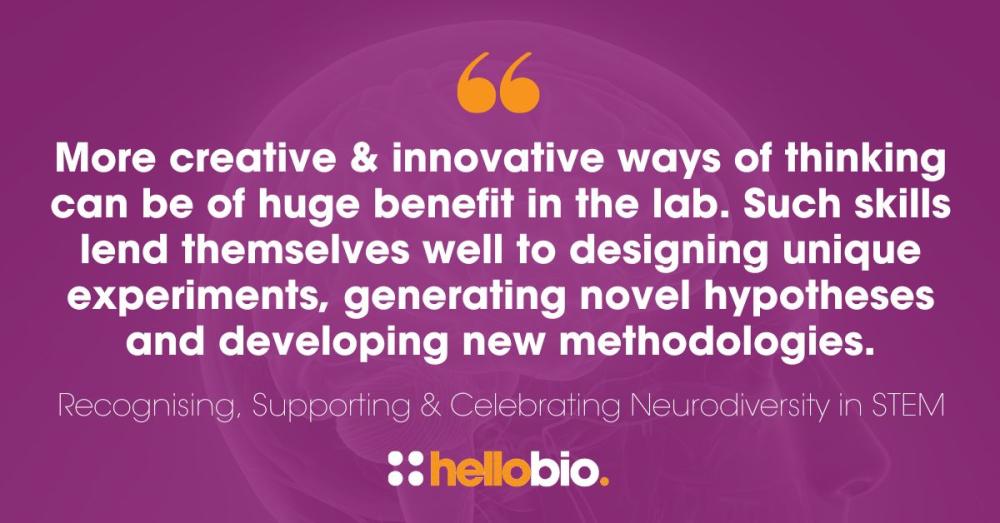 Are you a neurodivergent scientist? What challenges have you faced in the lab, and how have you and your colleagues overcome them? We’d love to hear your story! Tell us in the comments below, share with us on X(Twitter) @hello_bio, or contact us by email to write a blog or be interviewed about your experiences: hello@m2stage.hellobio.com