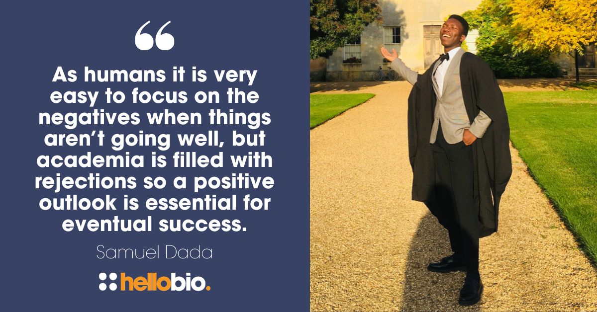 The path to PhD success is rarely a smooth one, with most students facing unexpected setbacks at some point along their journey. For Samuel Dada, a PhD student in Biological Sciences at the University of Cambridge, the PhD journey itself was an unexpected one. After being dropped from A-Level Chemistry class and being told that “science was not for him”, the chances of a successful career in STEM seemed slim. However, his resilience shone through, and with hard work and perseverance he finally secured a position at one of the UK’s most prestigious institutes.