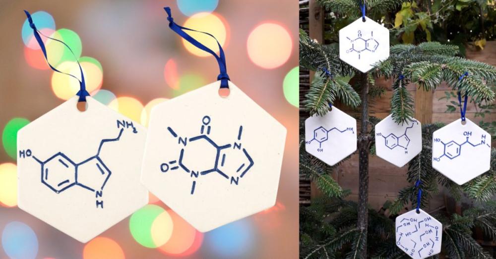 Want your Christmas tree to be more chemis-tree this year?! These ceramic decorations are the perfect gift for the chemist in your life, and will add a unique ‘element’ to your festivities! Handmade by Judith Hobbs Studio Pottery in Bristol, UK, customers can choose from caffeine, adrenaline, dopamine or serotonin formulas to hang from their branches.