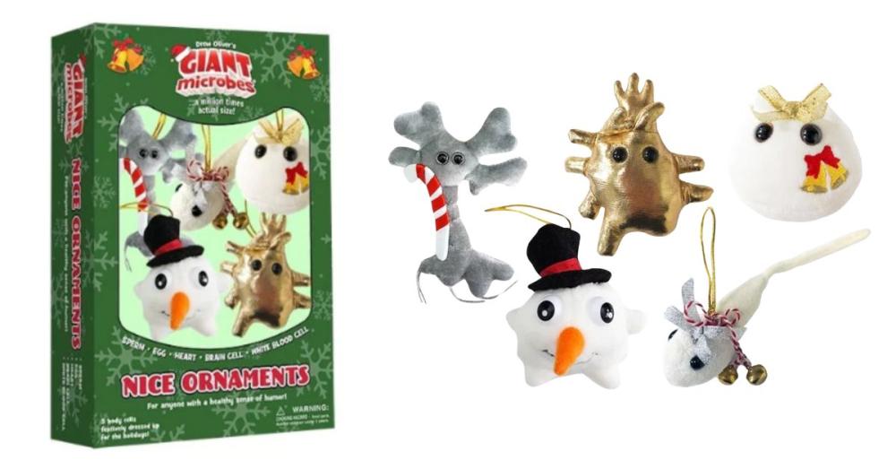 Add a little fun to your tree this year with these soft microbe hanging tree decorations from Planet Microbe. This set of 5 festive characters features a sperm cell, an egg cell, a heart of gold, a brain cell and a white blood cell who are all dressed up for the holidays! Also available are COVID cell and vaccine sets, as well as a ‘topical’ winter germ set of characters - although you might prefer to avoid those this Christmas!