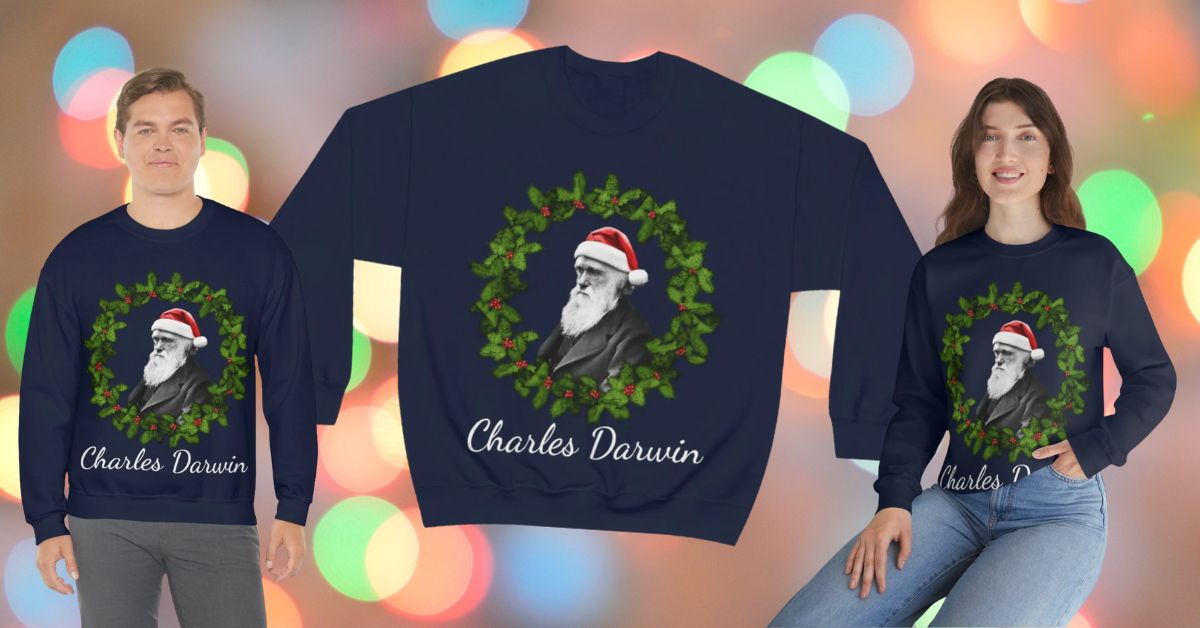 More info: https://www.etsy.com/listing/1334615201/charles-darwin-christmas-sweater-heavy