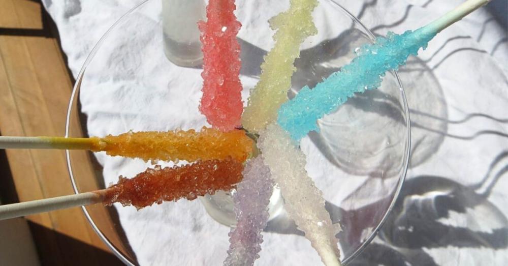 These rock candy crystals not only look impressive, they taste great too! By using a supersaturated sugar solution, you can grow your own sugar crystals on lollipop sticks. The process takes around a week, with crystals forming when the sugar solution encouters a 'seed' molecule, in this case, regular granulated sugar we all have in our kitchen cupboards! Try adding your own coloring and flavoring to personalize the treats.