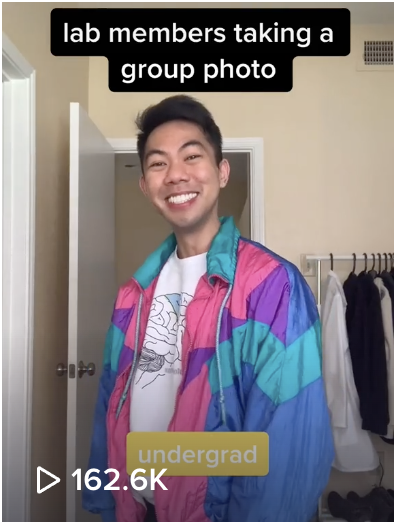 Biochemistry graduate and research technician Darrion Nguyen of the University of Texas has built a huge online following with his relatable and funny science videos. Under the name ‘Lab Shenanigans’ his TikTok videos poke fun at PIs and offer a behind the scenes glimpse of life in the lab. His short skits combine popular memes with concepts from biochemistry to make science content more accessible.