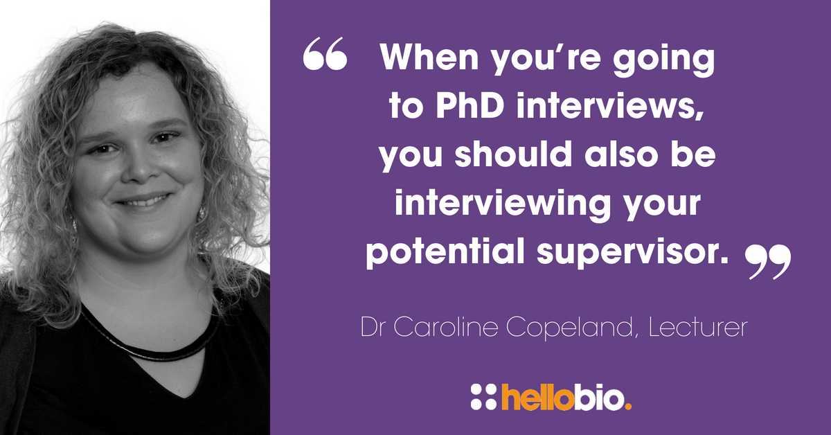 When you’re going to PhD interviews, you should also be interviewing your potential supervisor in return: are they someone that you can work with?. Dr Caroline Copeland