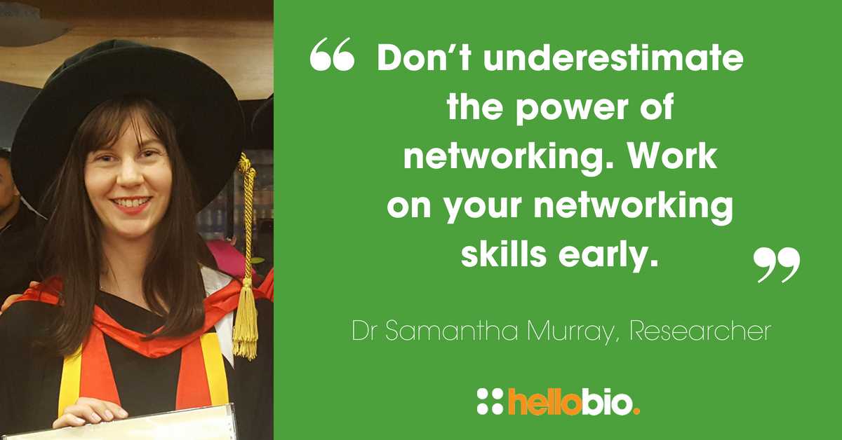 Don’t underestimate the power of networking – work on your networking skills early. Dr Samantha Murray