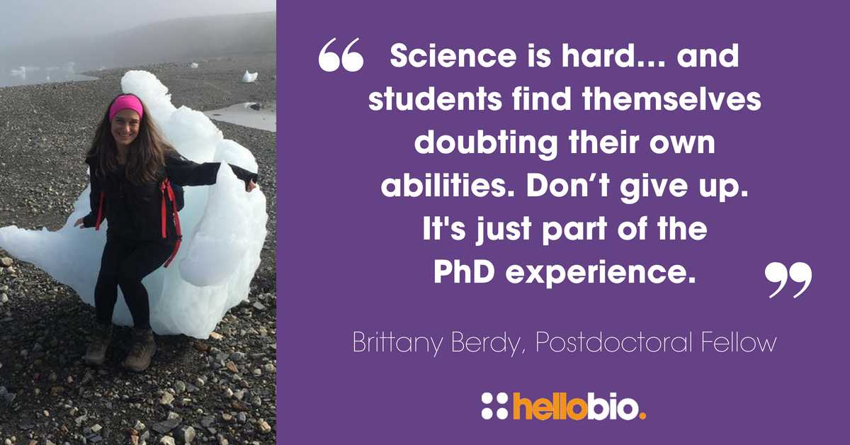 Brittany Berdy, a postdoctoral fellow at The Rowland Institute at Harvard is one of the most upbeat and positive scientists we know. She gave us a pep talk that every PhD needs to hear: