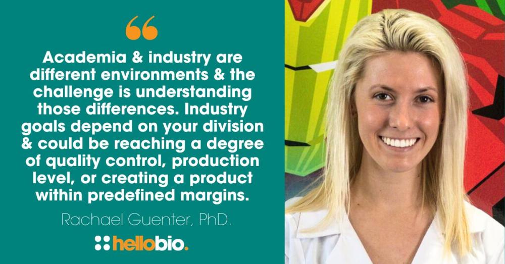 Rachael Guenter of the University of Alabama at Birmingham, USA, is a scientist who has worked in both settings. In her interview with us, she shared her experience of transitioning from academia to a commercial role. She said: “Academia and industry are different working environments, but both are important. The main challenge transitioning between the two is understanding the differences between the respective goals. In academia, goals look more like accomplishing experiments for a grant or paper, submitting grants, and publishing peer-reviewed papers. In industry, goals are dependent on your division and could look more like reaching a degree of quality control, production level, or creating a product within predefined margins.”