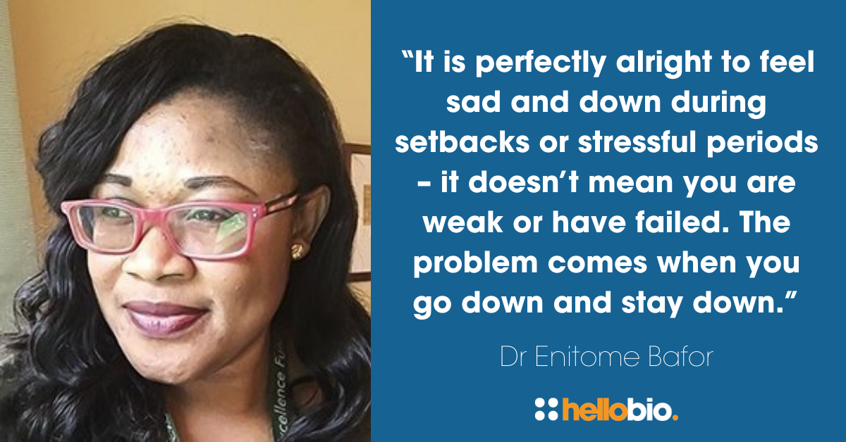 “It is perfectly alright to feel sad and down during setbacks or stressful periods – it doesn’t mean you are weak or have failed. The real problem comes when you go down and stay down.” – Dr Enitome Bator