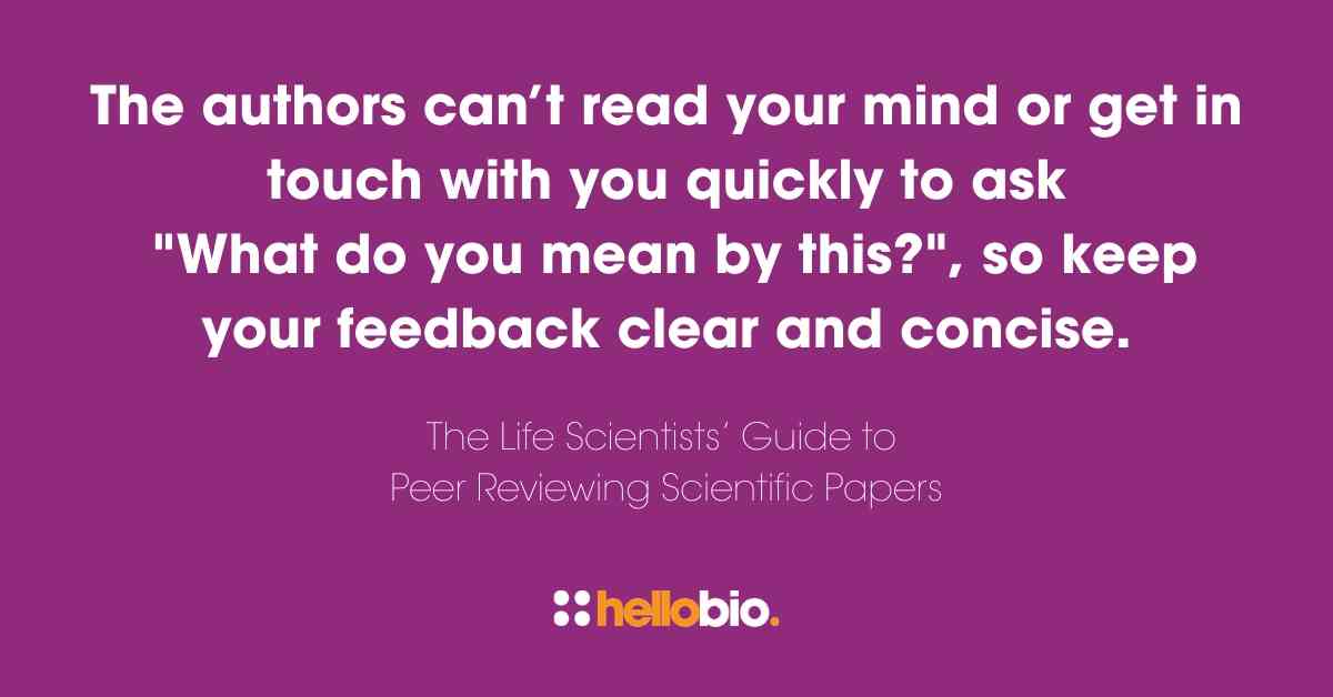 The authors can’t read your mind or get in touch with you quickly to ask: “What do you mean by this?”, so keep your feedback clear and concise.