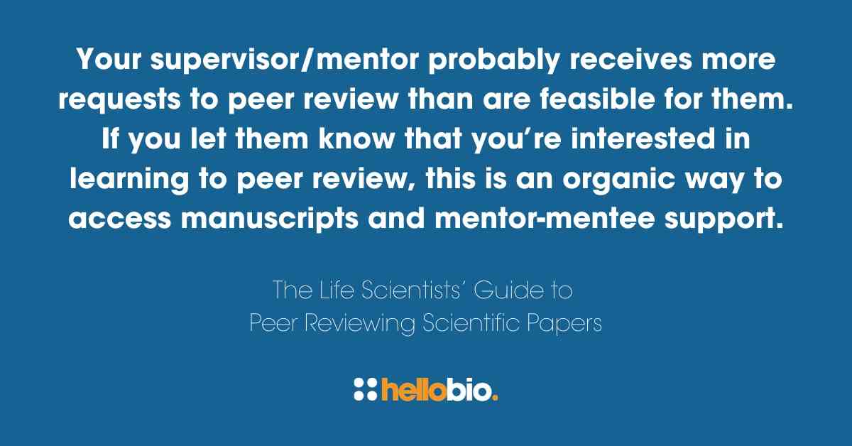 - Your supervisor/mentor probably receives more requests to peer review than are feasible for them. If you let them know that you’re interested in learning to peer review, this is an organic way to access manuscripts and mentor-mentee support. Ensure that when your reviewer’s comments are submitted back to the journal that you are named as a contributor to the work to help establish your profile as a peer reviewer at that journal. Some journals even have a designated section for recognition of ‘reviewers-in-training’.