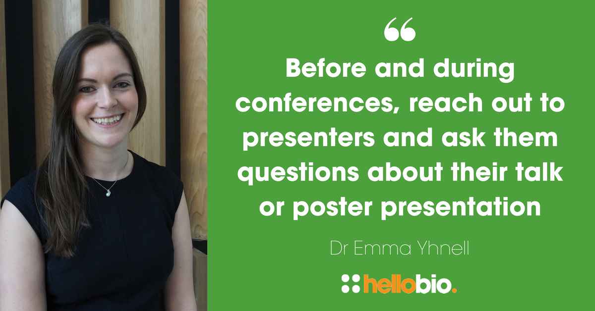 You can take this even further. As Dr Emma Yhnell advised: “Before and during conferences, you can reach out to presenters and ask them questions about their talk or poster presentation”. You could even build these questions out further into a blog or article, which put the speaker in the spotlight.