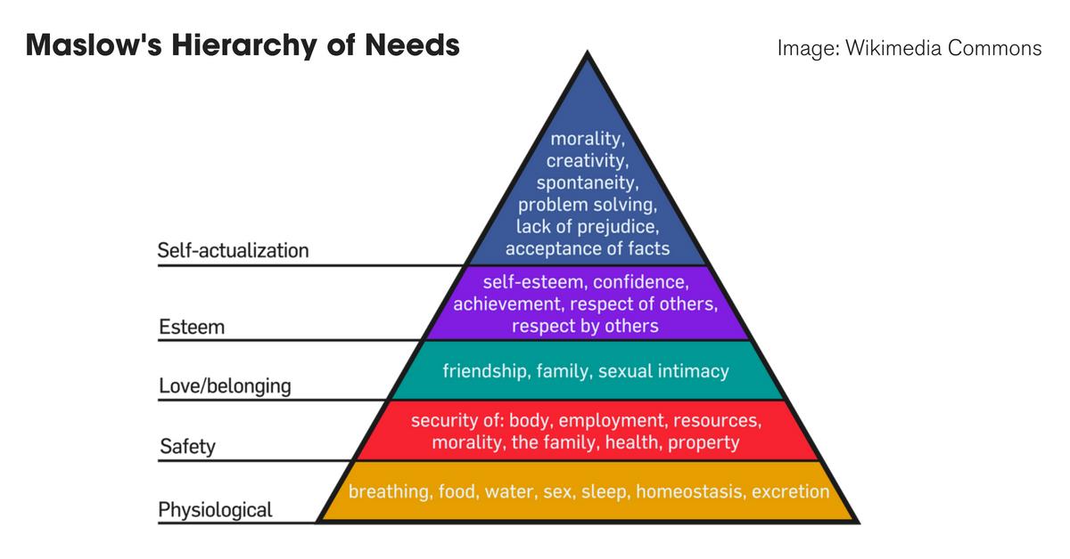 If you’re interested in psychology, you might have heard of Abraham Maslow’s Hierarchy of Needs, published in his 1943 paper A Theory of Human Motivation. It can be visualised as this: