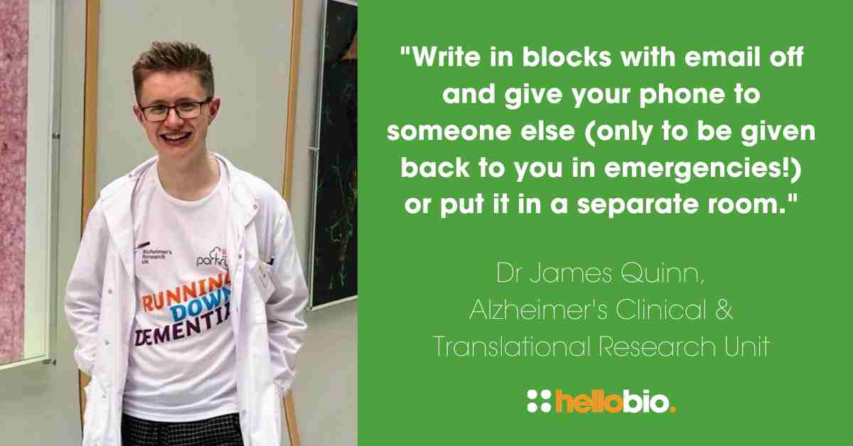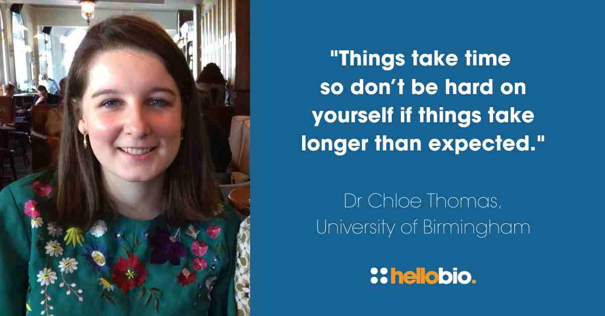 Dr Chloe Thomas, Post Doctorate at University of Birmingham School of Biomedical Sciences, agrees: “Find a quiet place you can focus and not get distracted. Take regular breaks (45 minutes working, 15 minutes doing something different). Things take time so don’t be hard on yourself if things take longer than expected.”