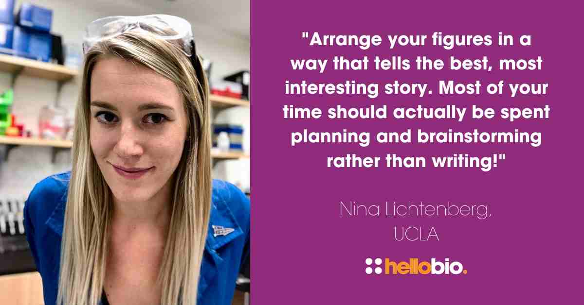 Neuroscientist Nina Lichtenberg from UCLA adds: “Arrange your figures in a way that tells the best, most interesting story. Write the methods and results. Make a (super) detailed outline for the intro and discussion before writing. Most of your time should actually be spent planning and brainstorming rather than writing!”