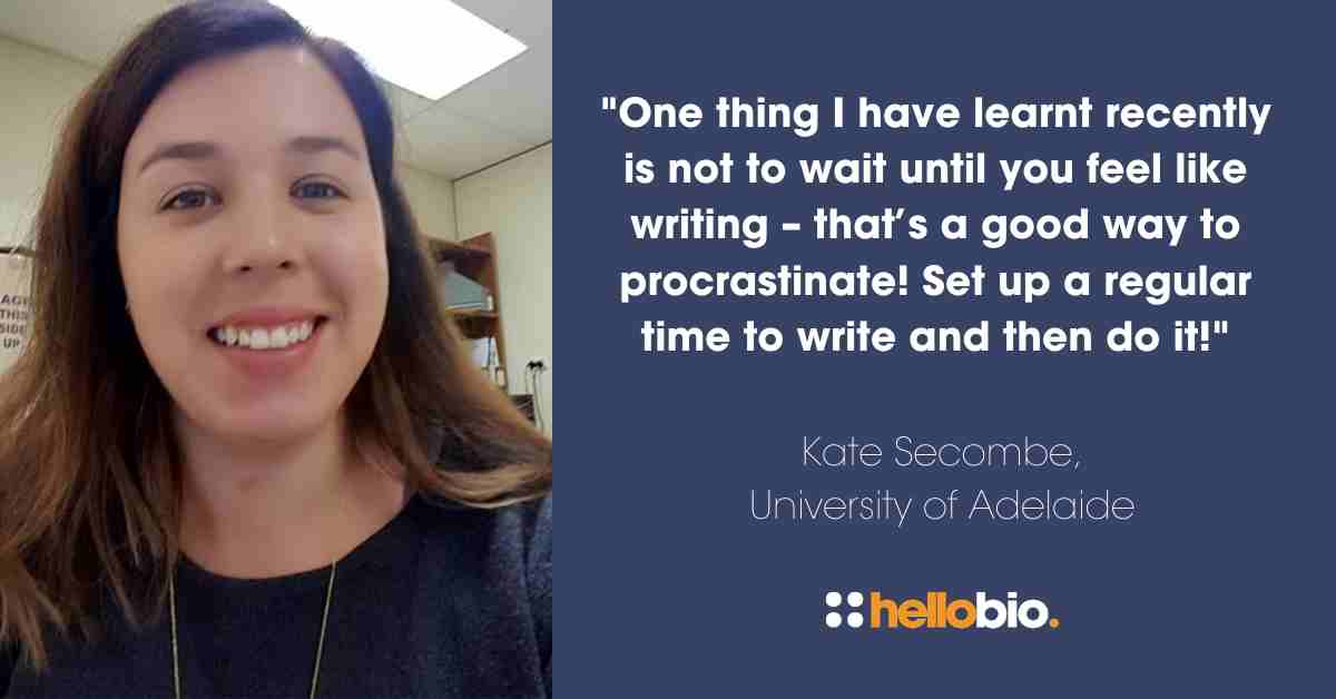 Kate Secombe, PhD Candidate from the University of Adelaide shared her thoughts on combating procrastination: “One thing I have learnt recently is not to wait until you feel like writing – that’s a good way to procrastinate! Set up a regular time to write and then do it!”