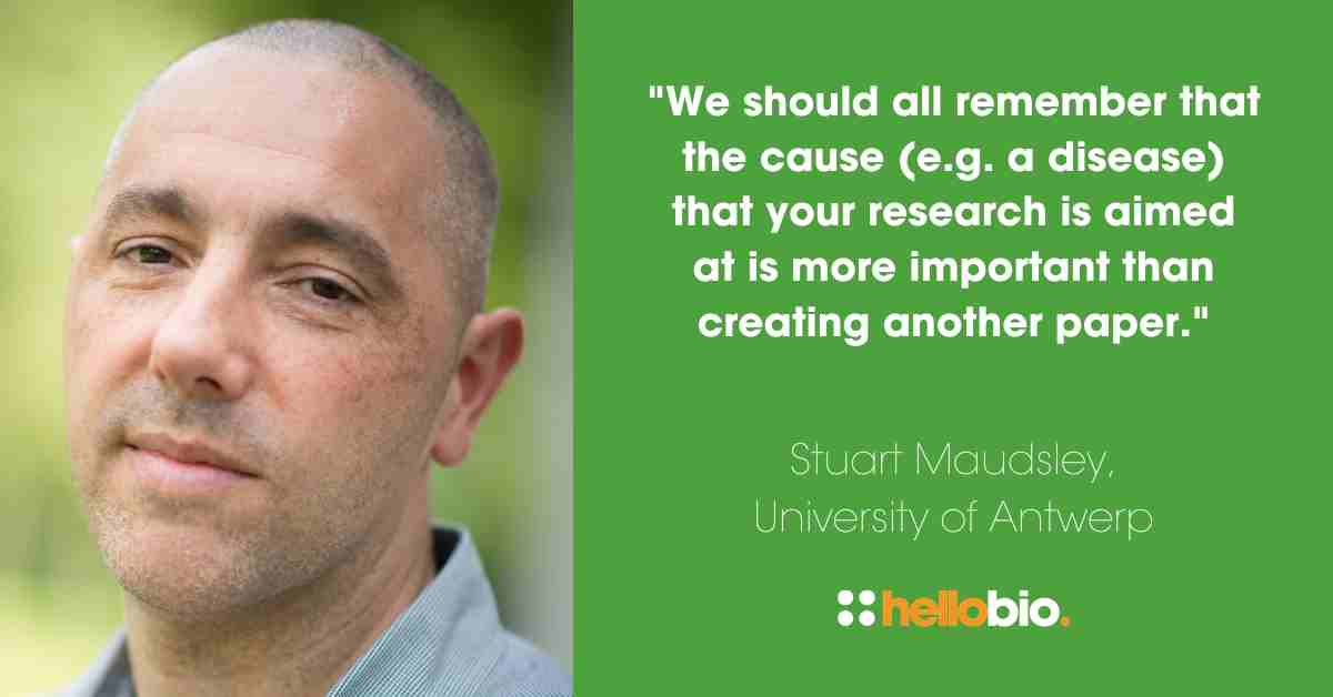 Stuart Maudsley, researcher in the Receptor Biology Lab at the University of Antwerp agrees. He says: “We should all remember that the cause (e.g. a disease) that your research is aimed at is more important than creating another paper.”