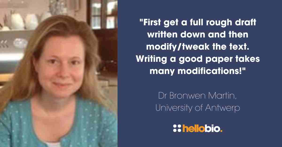 Although continuous feedback is important throughout your writing process, it’s best not to edit your words before you’ve laid them all out in a draft – or you’ll lose your flow and momentum. Scientific Editor from the University of Antwerp, Dr Bronwen Martin, advises: “First get a full rough draft written down and then modify / tweak the text. Writing a good paper takes many modifications! If you can, choose to publish your paper Open Access so that everyone can freely read it.”