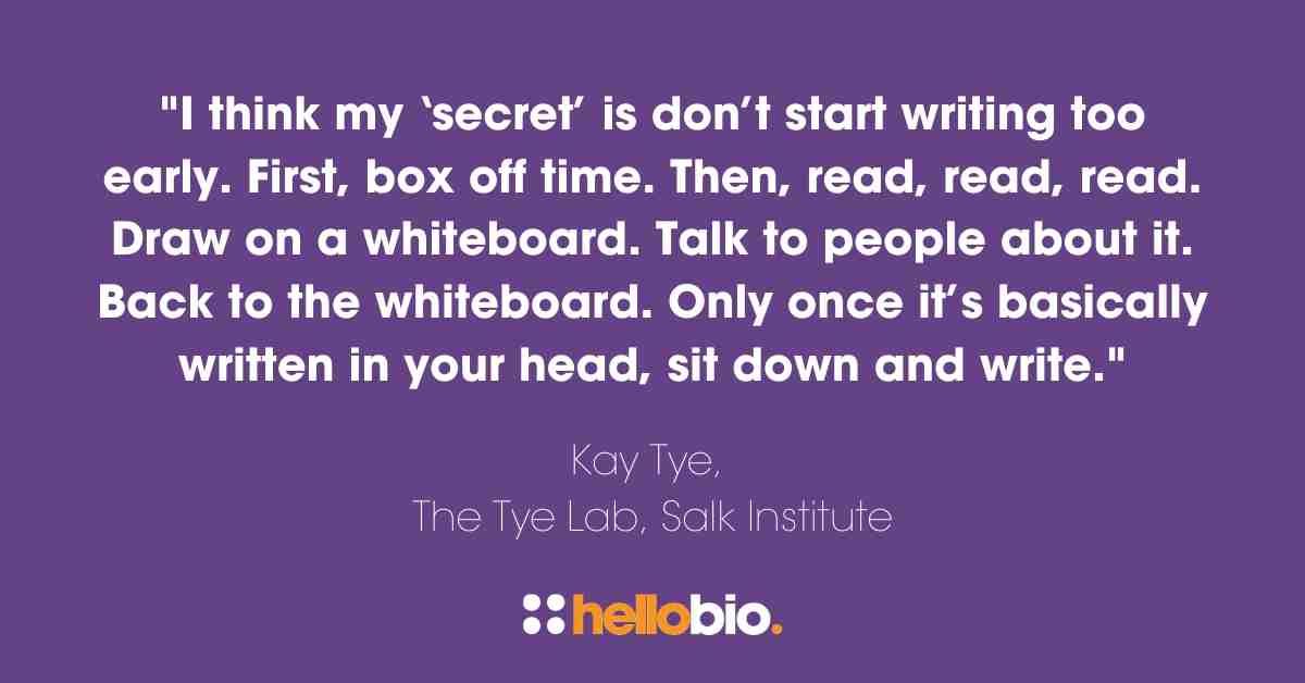 Neuroscientist Kay Tye from the Salk Institute advises not to go sprinting ahead with the writing portion. She told us: “I think my ‘secret’ is don’t start writing too early. First, box off time. Then, read, read, read. Draw on a whiteboard. Talk to people about it. Back to the whiteboard. Only once it’s basically written in your head, sit down and write.”