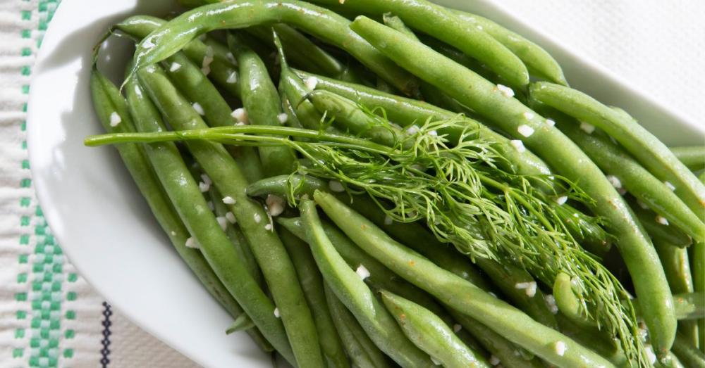 Pictured: Traditional pickled green beans served with chopped garlic and dill