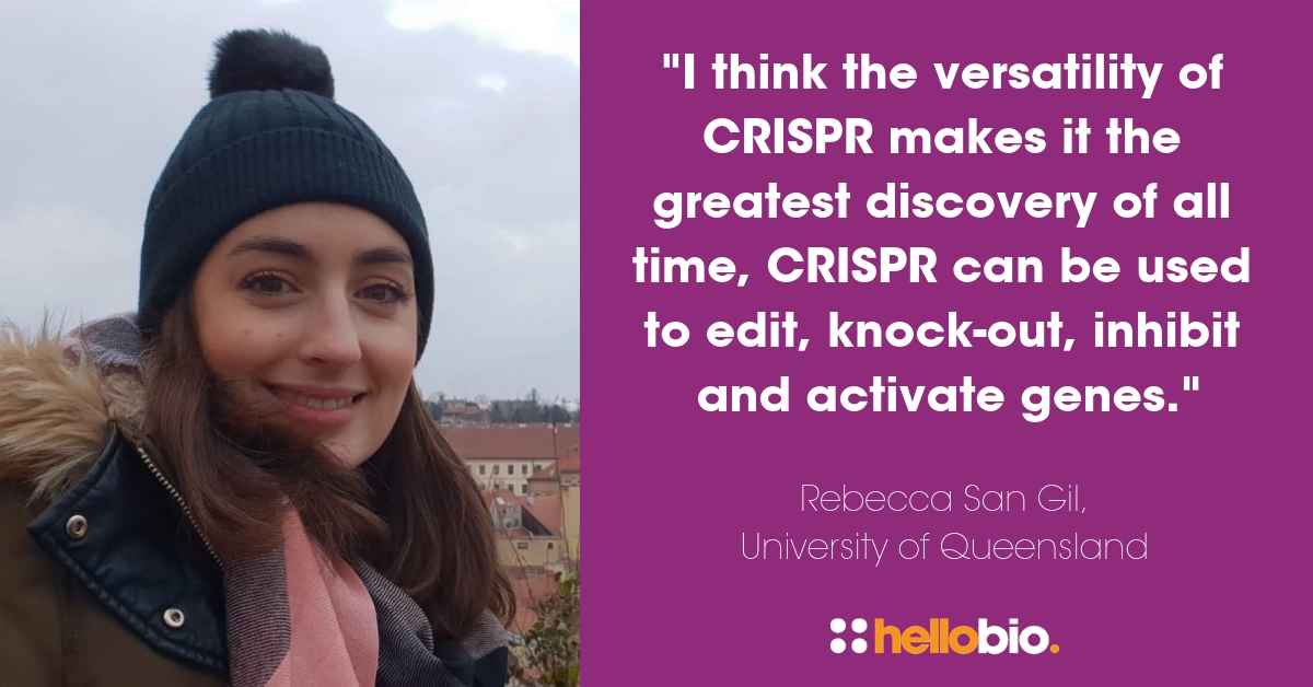 “I think it is the versatility of CRISPR that makes it the greatest discovery of all time, CRISPR can be used to edit, knock-out, inhibit and activate genes. I am very excited to be starting a new project in the new year involving CRISPR and I can’t wait to see what we will learn using this technique”.