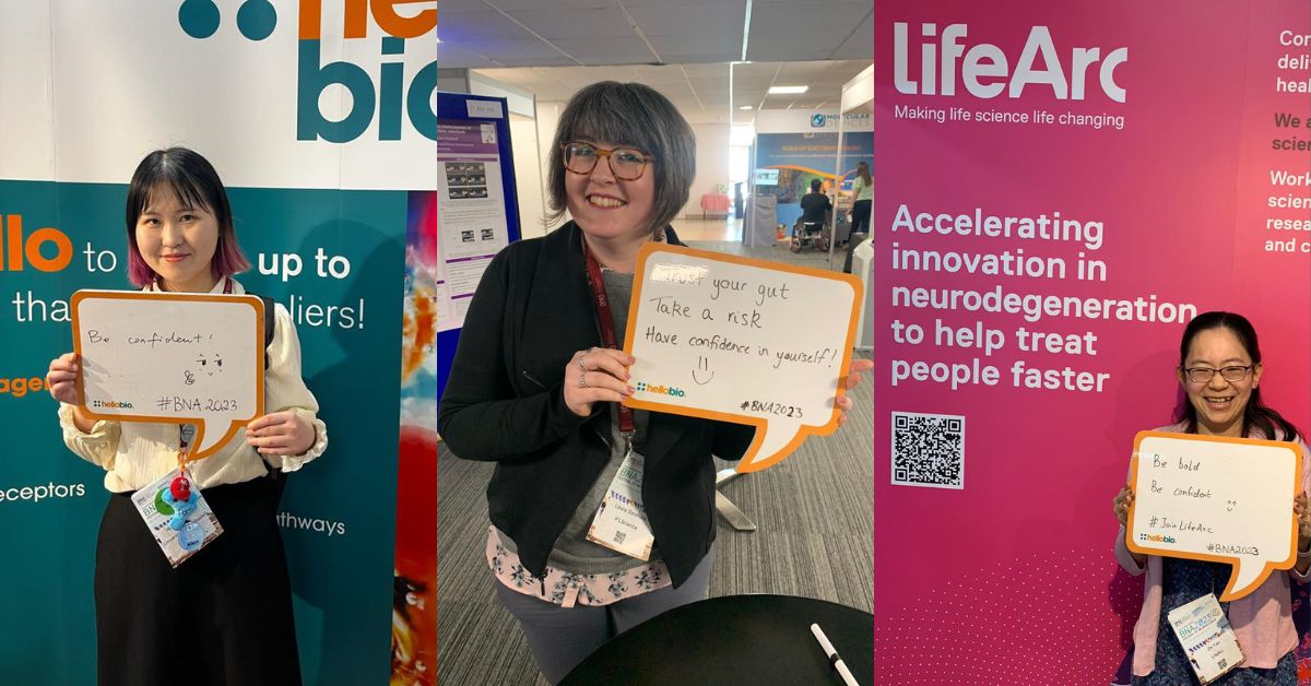 When you’re just starting out in your career, your confidence can easily be knocked by setbacks or rejections. Self-belief and bravery are invaluable assets for a successful career in life science. Ningyuan Sun (left) of the University of Manchester and Zhi Yao (right) of LifeArc remind younger scientists to “be bold and confident” while Laura from IFLScience (centre) says to “trust your gut” and be ready to “take a risk!”