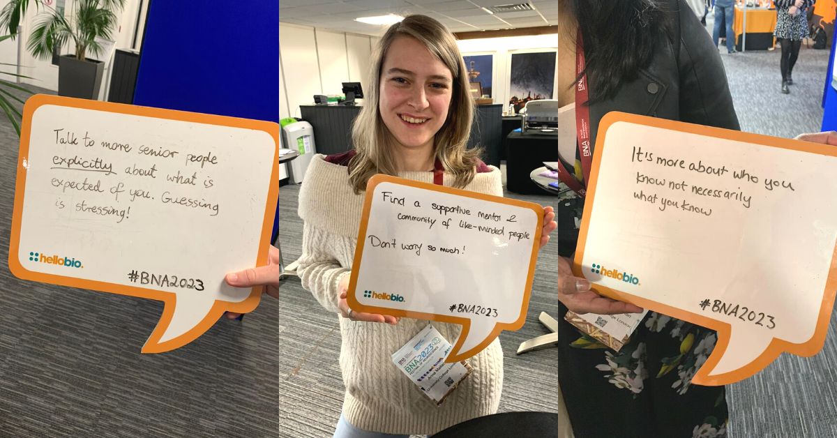 Networking is one of the most important things you can do to advance your career in life science. No matter how many hours you dedicate to lab work, that one chance meeting with a key researcher at a conference or networking event could be what takes your research to the next level. Fiona from UCL reminded her younger self that “it’s more about who you know, not necessarily what you know” while Anna (centre) of UCL reinforced the importance of surrounding yourself with the right colleagues - “find a supportive mentor and community of like-minded people.”